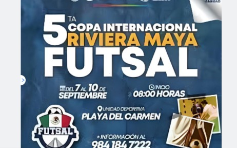 Una vez más el Municipio de Solidaridad recibe a deportistas de diversos países y estados del país, así como locales, que participarán en la 5a Copa internacional de Futsal Riviera Maya, que se realizará del 7 al 10 de septiembre en el gimnasio Poliforum de la unidad deportiva Playa del Carmen y en el que 12 equipos buscarán quedarse con el titulo de campeón que buscara defender la escuadra de Capitalinos Futsal.