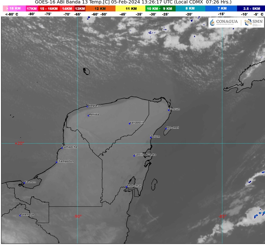 En la Península de Yucatán, se espera un cielo medio nublado con lluvias aisladas en Campeche, Yucatán y Quintana Roo. Las condiciones meteorológicas serán templadas por la mañana y cálidas por la tarde. Además, se anticipa un evento de “Norte” con rachas de 60 a 80 km/h y oleaje de 2 a 4 metros de altura en las costas de Yucatán y Quintana Roo. En Campeche, se esperan rachas de 40 a 60 km/h y oleaje de 1 a 3 metros de altura en las costas.