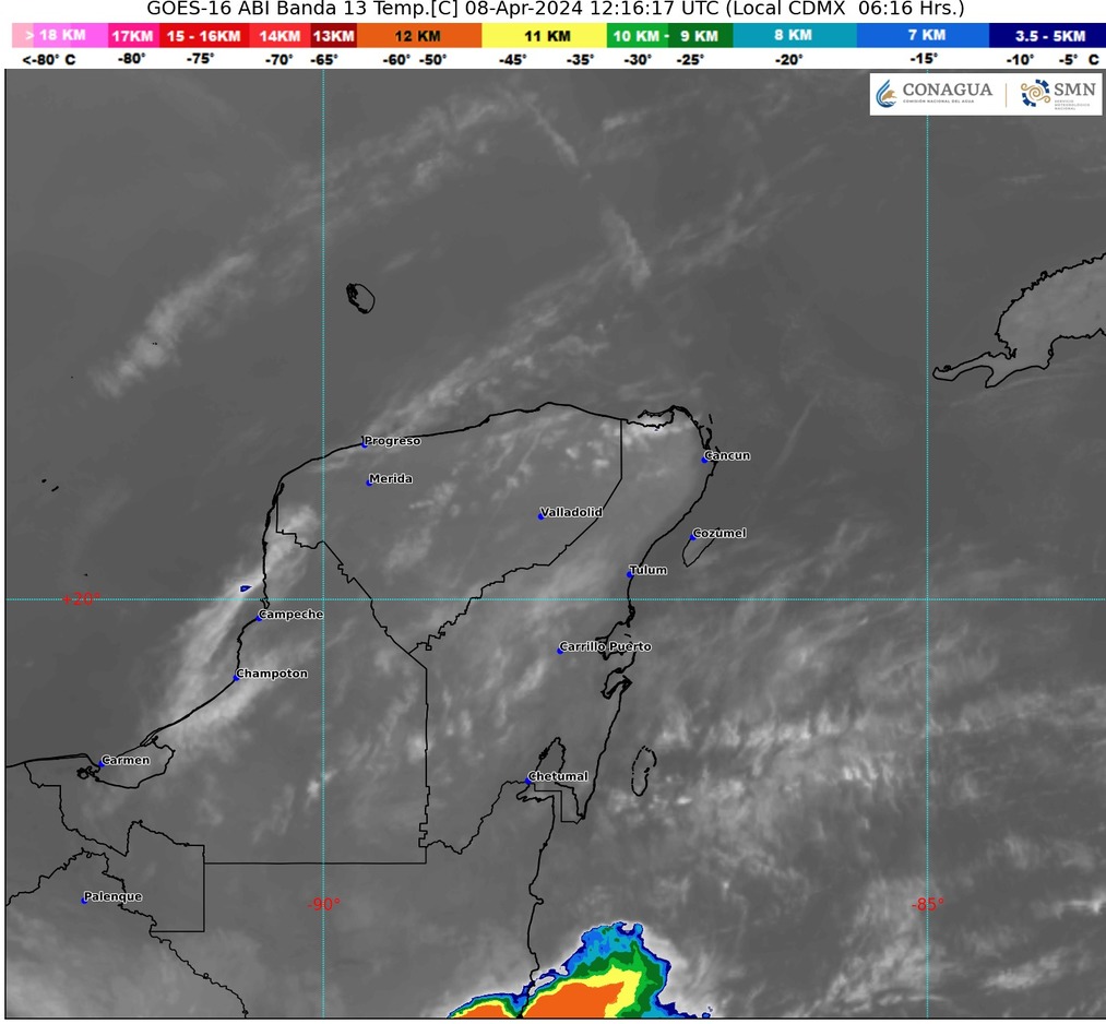 En la Península de Yucatán, se espera cielo parcialmente nublado durante la mañana con ambiente templado. Por la tarde, se prevé un aumento de la nubosidad con lluvias aisladas en Campeche y Quintana Roo, sin precipitaciones en Yucatán. Durante la tarde, se espera ambiente caluroso en Quintana Roo y muy caluroso en zonas de Campeche y Yucatán. Se recomienda precaución debido a vientos de 10 a 25 km/h con rachas de 40 a 60 km/h.