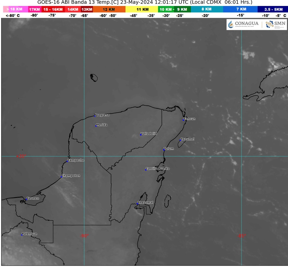 En la Península de Yucatán, se espera cielo parcialmente nublado con posibilidad de lluvias aisladas en Quintana Roo. No se esperan lluvias en Campeche y Yucatán. Las temperaturas serán cálidas por la mañana y extremadamente calurosas por la tarde. Se espera viento del este de 10 a 20 km/h, con ráfagas de 40 a 60 km/h en la región.