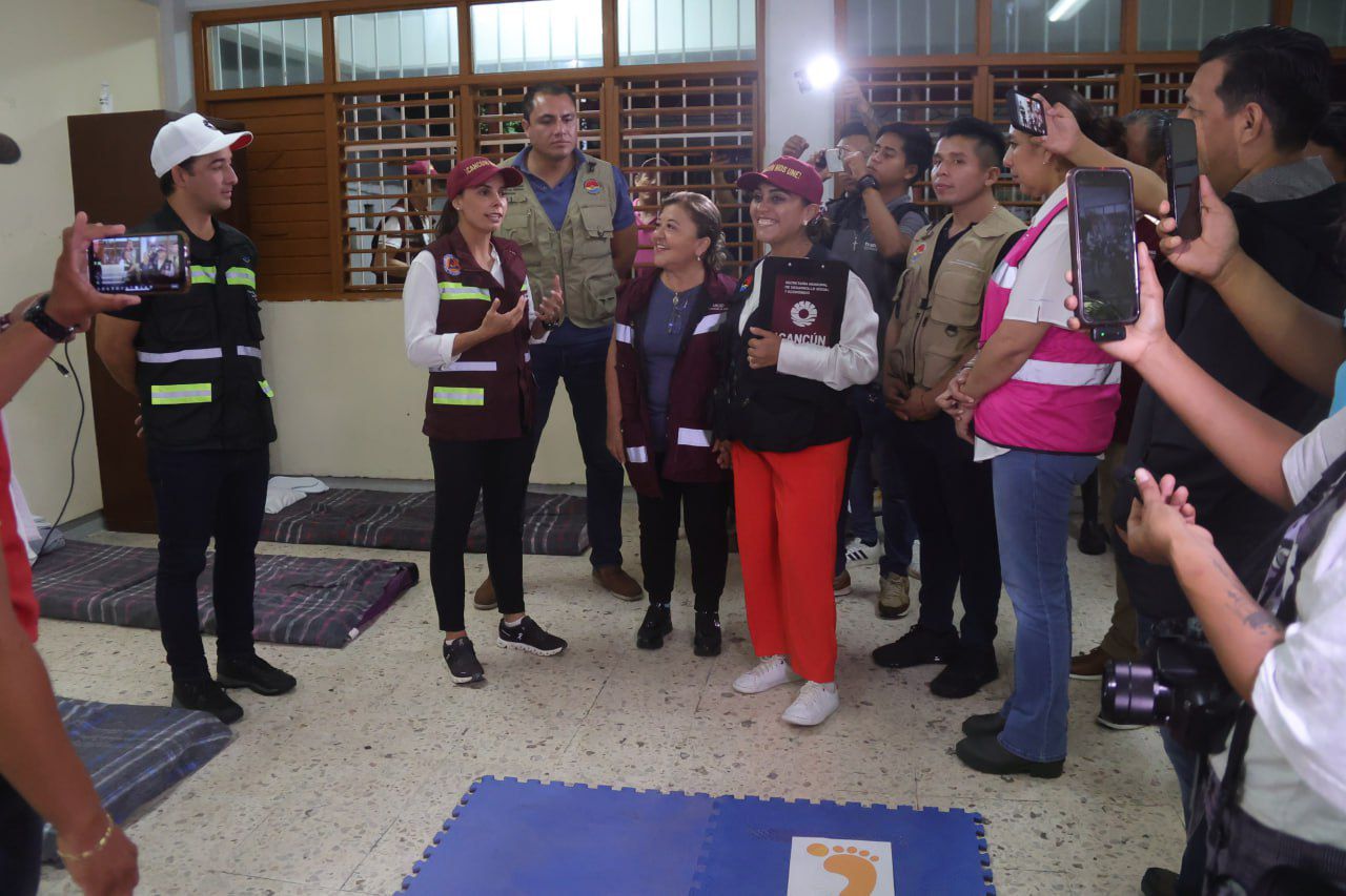 La Primera Autoridad Municipal detalló que uno de los temas prioritarios ante el arribo de fenómenos hidrometeorológicos a la ciudad es salvaguardar y proteger a la población en situación de vulnerabilidad, por ello, acudió al refugio temporal habilitado en la escuela primaria “Chichén Itzá”, en la Supermanzana 235, para constatar que las aulas cuenten con colchonetas, avituallamientos y comodidades para resguardar a 80 personas en su capacidad máxima.