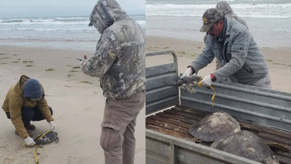 #TAMAULIPAS | Ambientalistas de la entidad llevaron a cabo el rescate de 40 ejemplares de tortuga verde (Chelonia mydas), los cuales se encontraban varados en las costas de Tamaulipas debido a un alto grado de hipotermia; fenómeno causado por la fuerte onda gélida que trajo consigo el frente frío número 24.