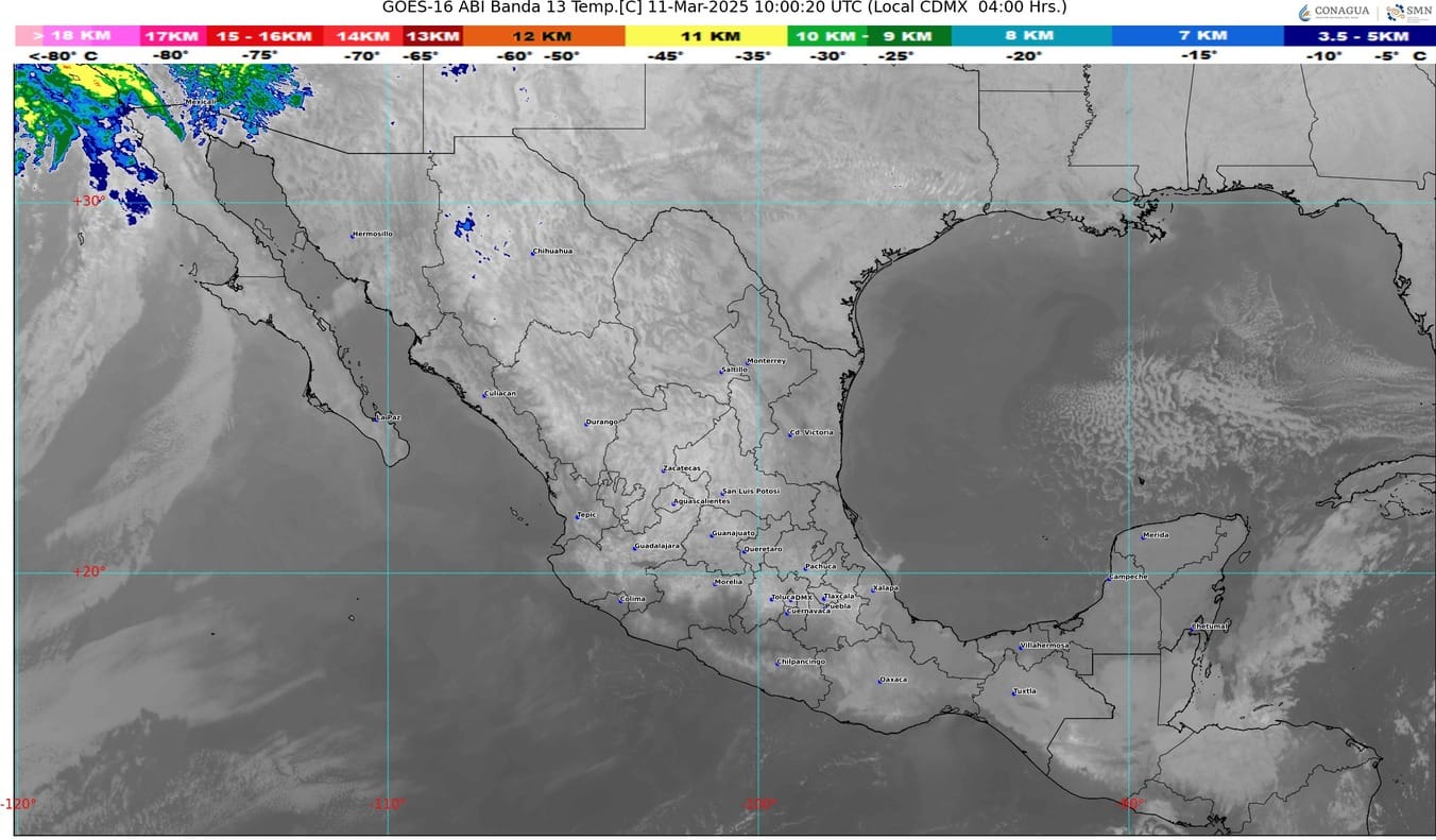 Una circulación anticiclónica en niveles medios de la atmósfera, aunada al bajo contenido de vapor de agua, mantendrán baja probabilidad de lluvia y un rápido ascenso de las temperaturas, con ambiente caluroso a muy caluroso en gran parte del territorio nacional (excepto en el noroeste de México).