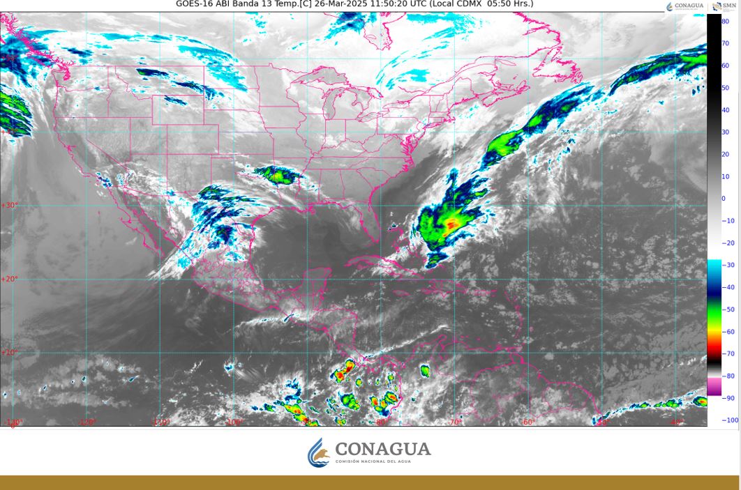 🔸 Habría lluvias intensas, descargas eléctricas y posible caída de granizo en Coahuila, Nuevo León y Tamaulipas, así como vientos fuertes y posible formación de torbellinos o tornados.