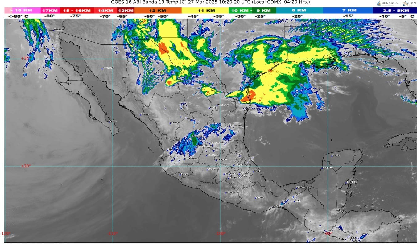Asimismo, se prevén rachas de viento de 60 a 80 kilómetros por hora (km/h) con posibles torbellinos o tornados en Coahuila, Nuevo León y Tamaulipas.