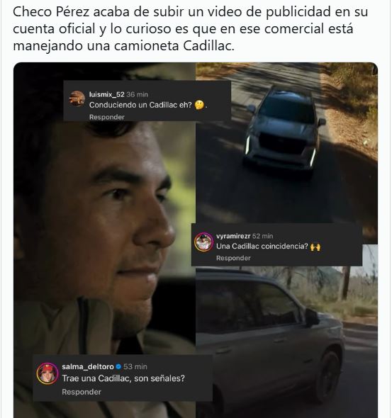 Aunque propiamente el logo del fabricante no se ve en los autos, los internautas reconocieron que sí es un modelo de Cadillac, por lo que muchos lo tomaron como un guiño o señal del piloto tapatío.