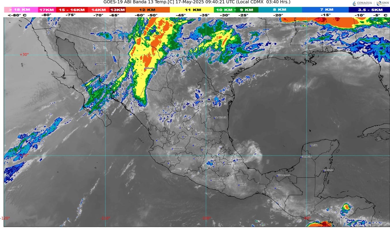 Por otra parte, una línea seca sobre Coahuila y las corrientes en chorro polar y subtropical ocasionarán lluvias con chubascos en el norte de México, con lluvias puntuales fuertes en Coahuila; todas con descargas eléctricas y posible caída de granizo.