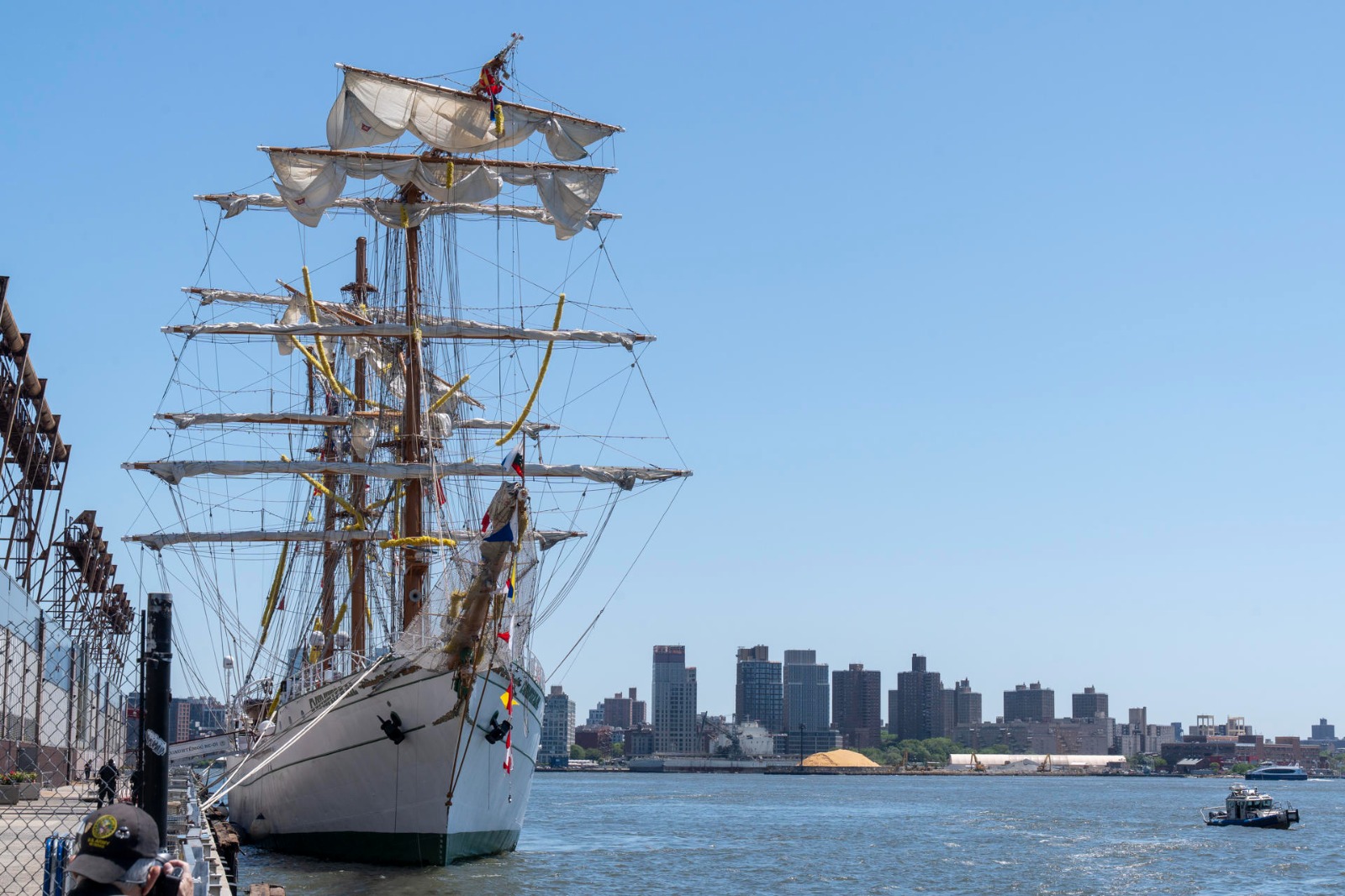 #INTERNACIONAL | El buque escuela de la Armada Mexicana *Cuauhtémoc*, que sufrió un accidente en el que murieron dos cadetes y resultaron heridos otros 19, será remolcado este viernes desde el bajo Manhattan, en el East River, hasta el condado de Brooklyn.