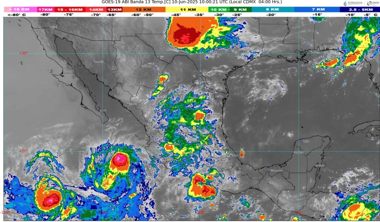 Una circulación anticiclónica en niveles medios de la atmósfera mantendrá el ambiente caluroso a muy caluroso en gran parte de la República Mexicana, prevaleciendo la onda de calor en Chihuahua (este y sureste), Coahuila (suroeste), Zacatecas (norte y sur), Durango (noreste y suroeste), Sinaloa (centro y sur), Nayarit (norte), Jalisco (centro y sureste), Michoacán (suroeste y sureste), Guerrero (centro y sur), Oaxaca (centro y sur), Veracruz (centro) y Campeche (noroeste y suroeste).