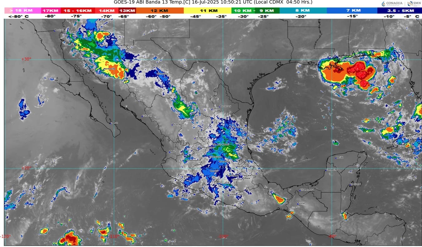 Un canal de baja presión en combinación con inestabilidad atmosférica sobre la Mesa del Norte y Mesa Central y con el ingreso de aire húmedo del golfo de México, originarán lluvias puntuales fuertes en Puebla, Morelos, Estado de México, Cuidad de México, Hidalgo, Querétaro, Guanajuato, Aguascalientes y Zacatecas.
