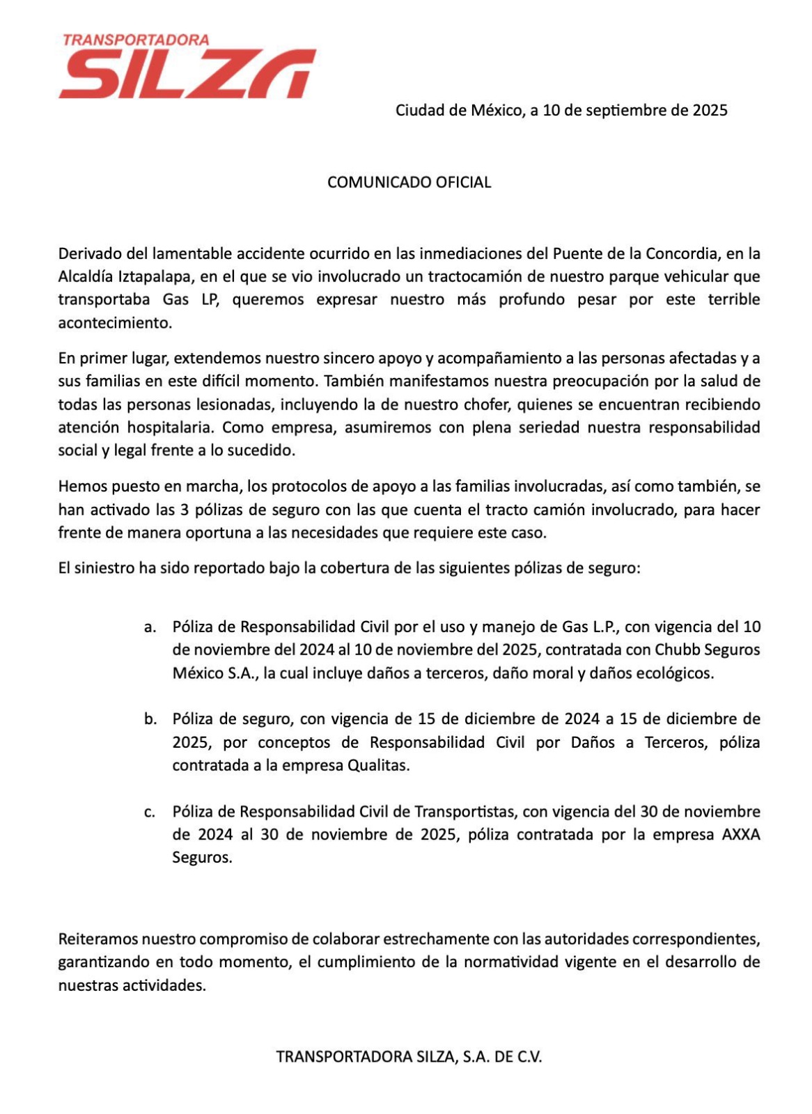 #NACIONAL || La empresa Transportadora Silza se identificó como dueña de la pipa que se accidentó en la alcaldía Iztapalapa y provocó un fuerte incendio que dejó 4 personas muertas.